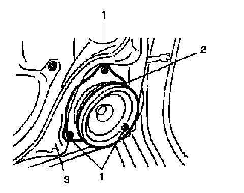3. Remove front speaker (2) from front door (3).