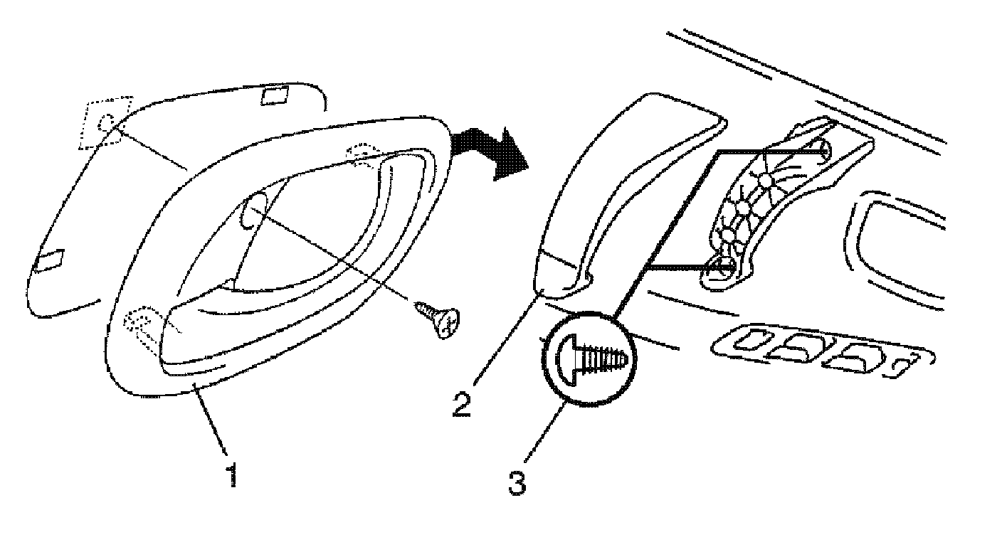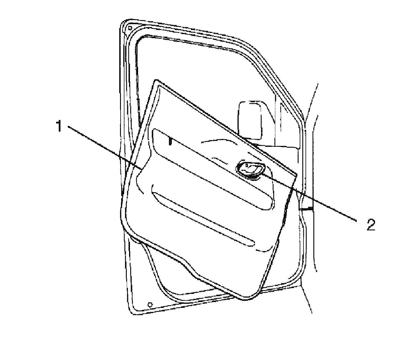 2. Remove inside door grip cover (2), and then remove door trim mounting bolts (3).
