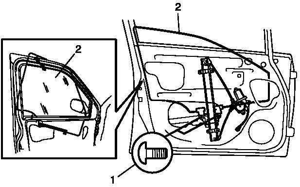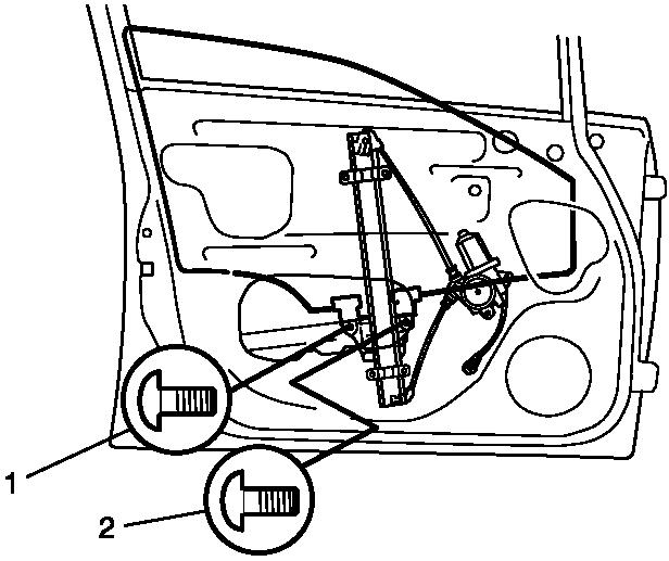 6. Remove door glass mounting screws (1).
