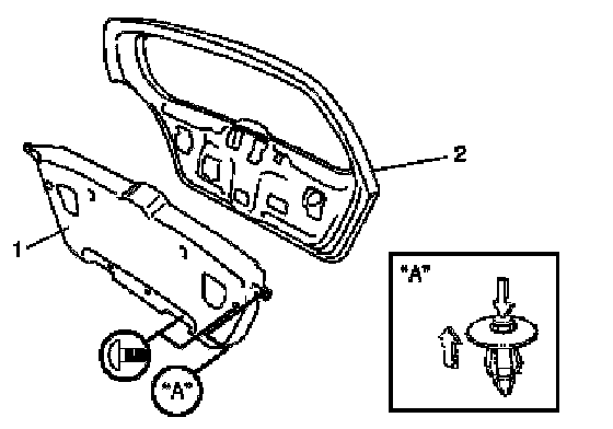 1. Remove door trim (1) from rearend door panel (2).