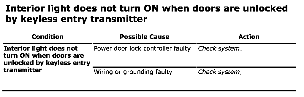 Interior Light Does Not Turn on When Doors Are Unlocked By Keyless Entry Transmitter