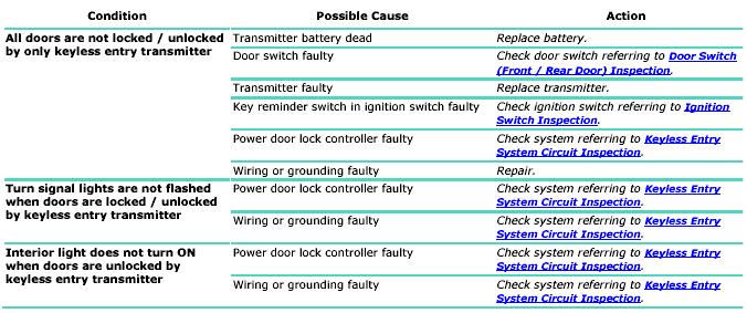 Confirm that power door lock system is in good condition before referring to the following possible causes.