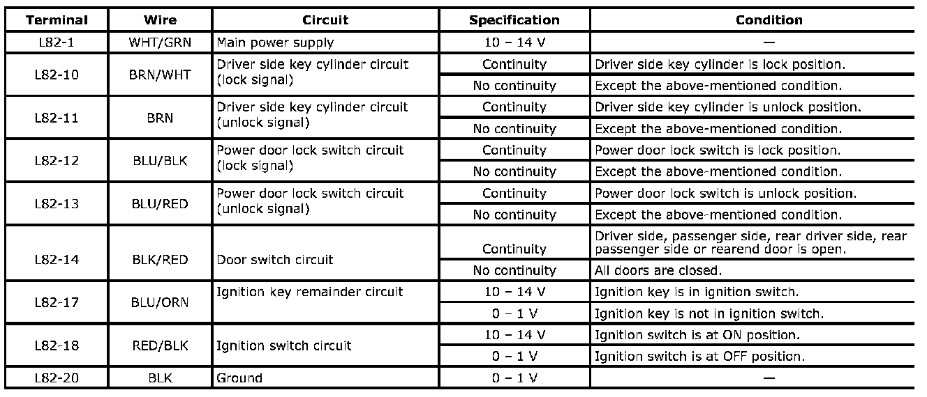 Power Door Lock System Circuit Inspection1. Disconnect negative (-) cable at battery.