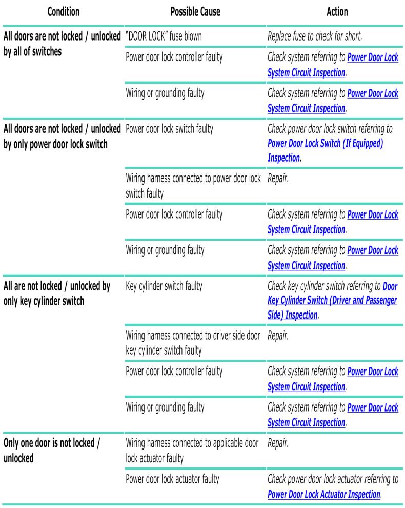Power Door Lock System (If Equipped) Symptom Diagnosis