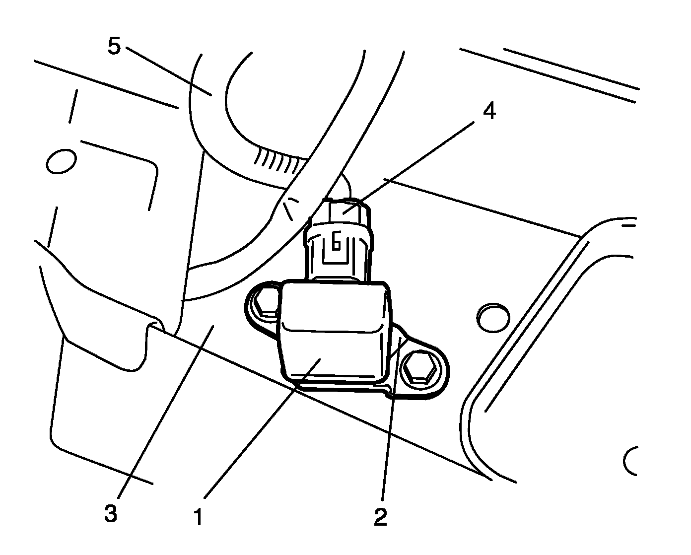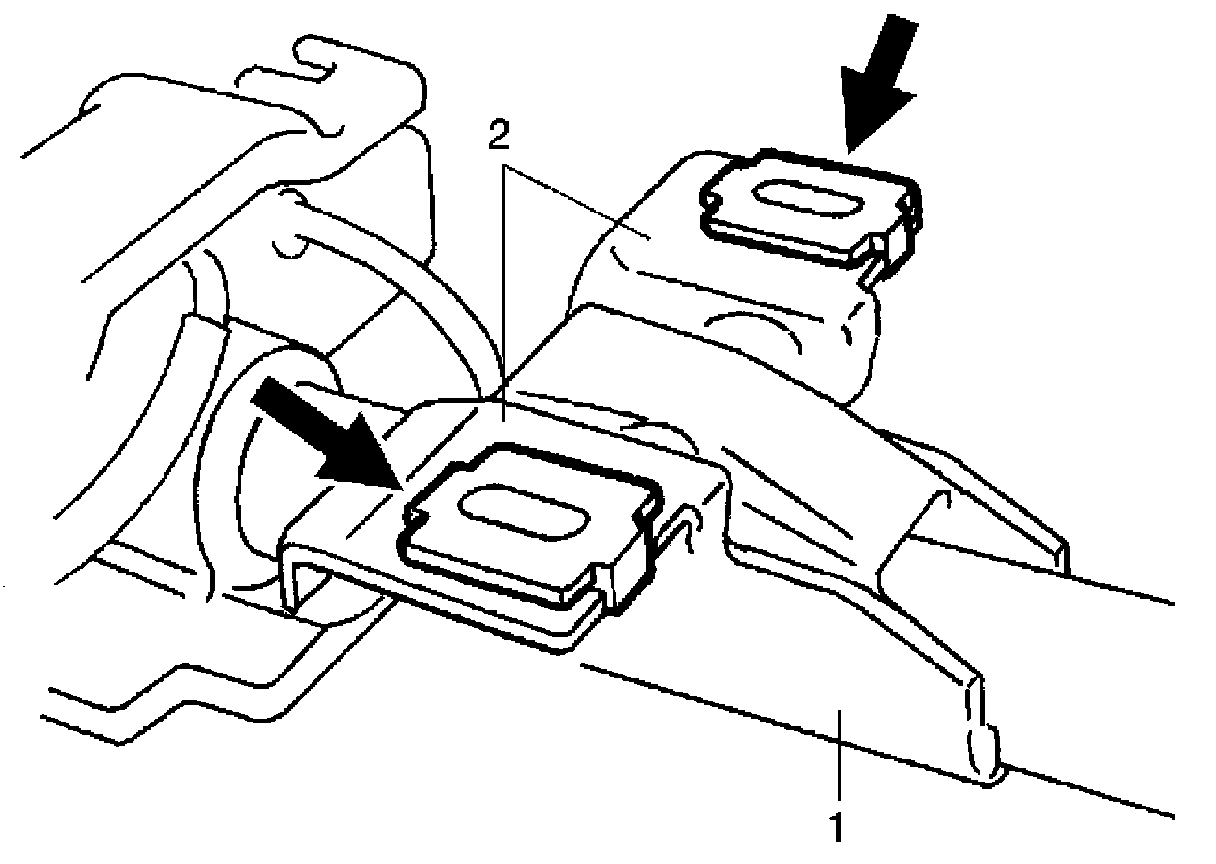 - Check sensor (1) and under body (2) for dents, cracks, deformation or rust.