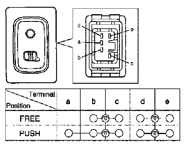 DOOR MIRROR HEATER SWITCH (IF EQUIPPED) INSPECTION1. Remove mirror heater switch from instrument panel.