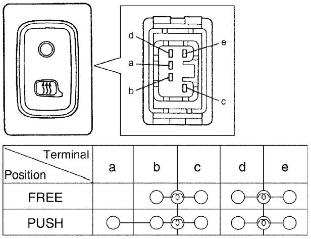 Door Mirror Heater Switch (If Equipped) Inspection1. Remove mirror heater switch from instrument panel.