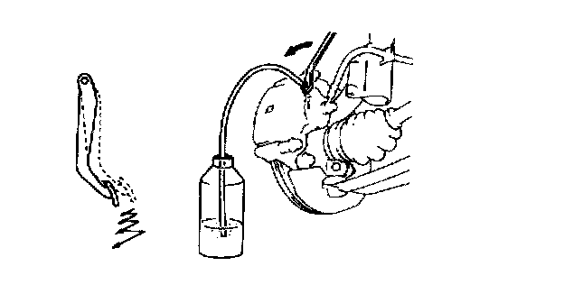 3. Depress brake pedal several times, and then while holding it depressed, loosen bleeder plug about one-third to one-half turn.