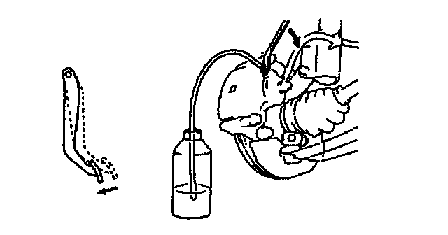 6. When bubbles stop, depress and hold brake pedal and tighten bleeder plug.
