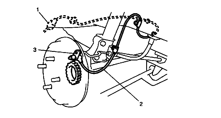 7. Remove rear wheel speed sensor (3) from knuckle.