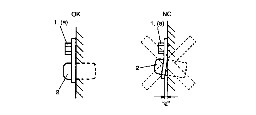 - Be sure to install wheel speed sensor (2) and its bolt at the correct (upper) position as shown in figure. Tighten sensor bolt (1) to specified torque.