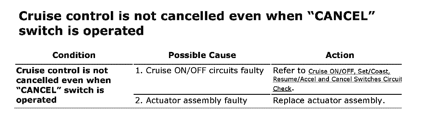 Cruise Control Is Not Cancelled Even When CANCEL Switch Is Operated