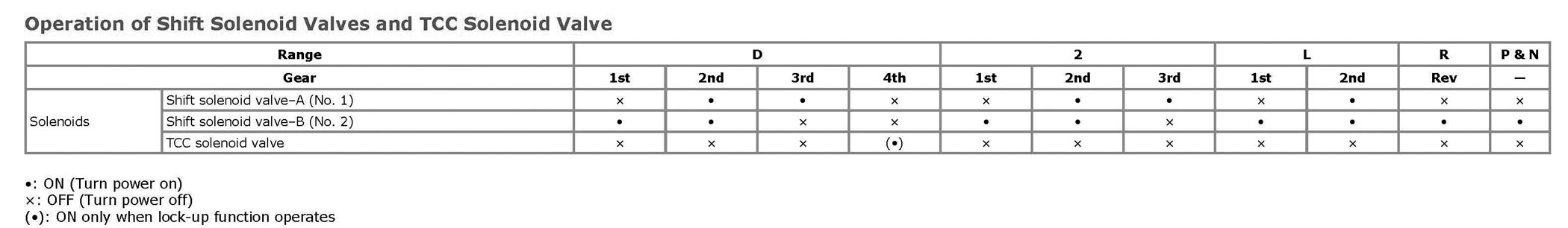 Operation of Shift Solenoid Valves and TCC Solenoid Valve