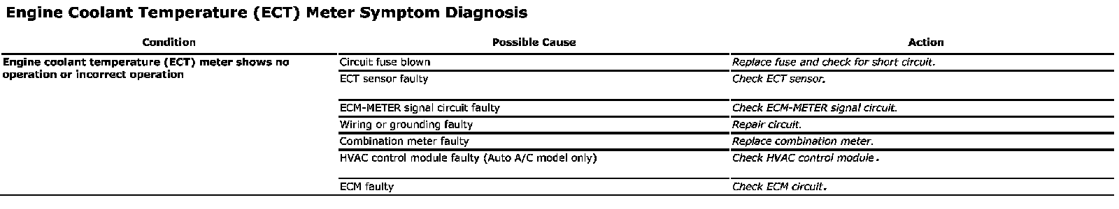 Engine Coolant Temperature (ECT) Meter Symptom Diagnosis: