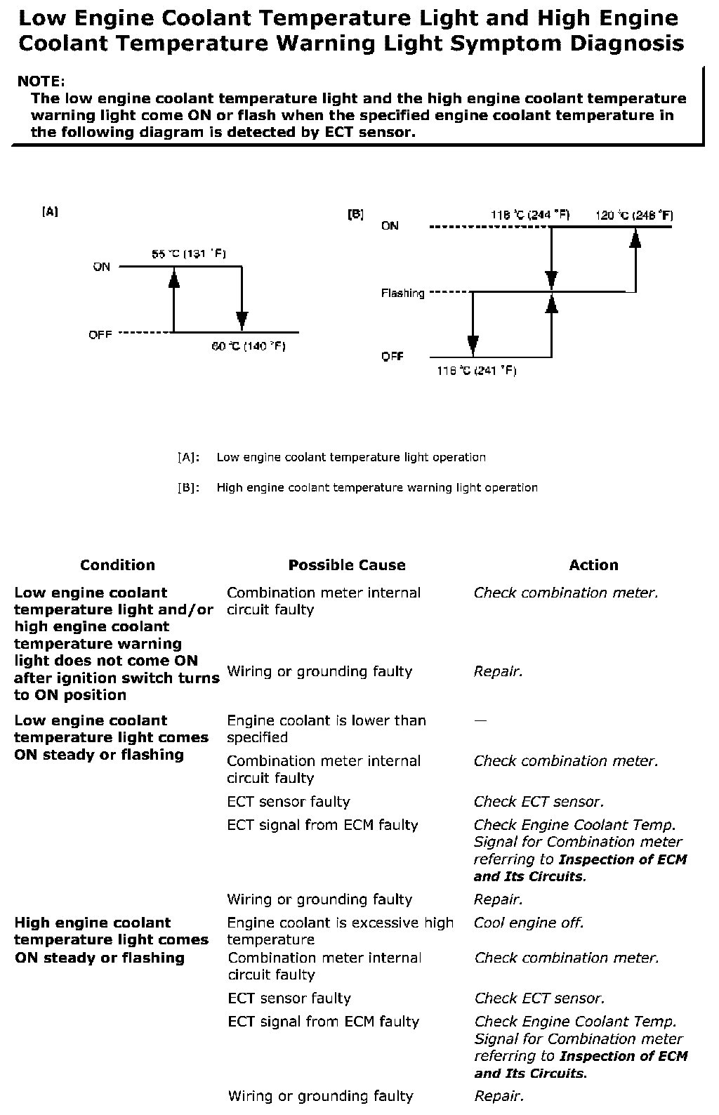 Low Engine Coolant Temperature Light And High Engine Coolant Temperature Warning Light Symptom Diagnosis: