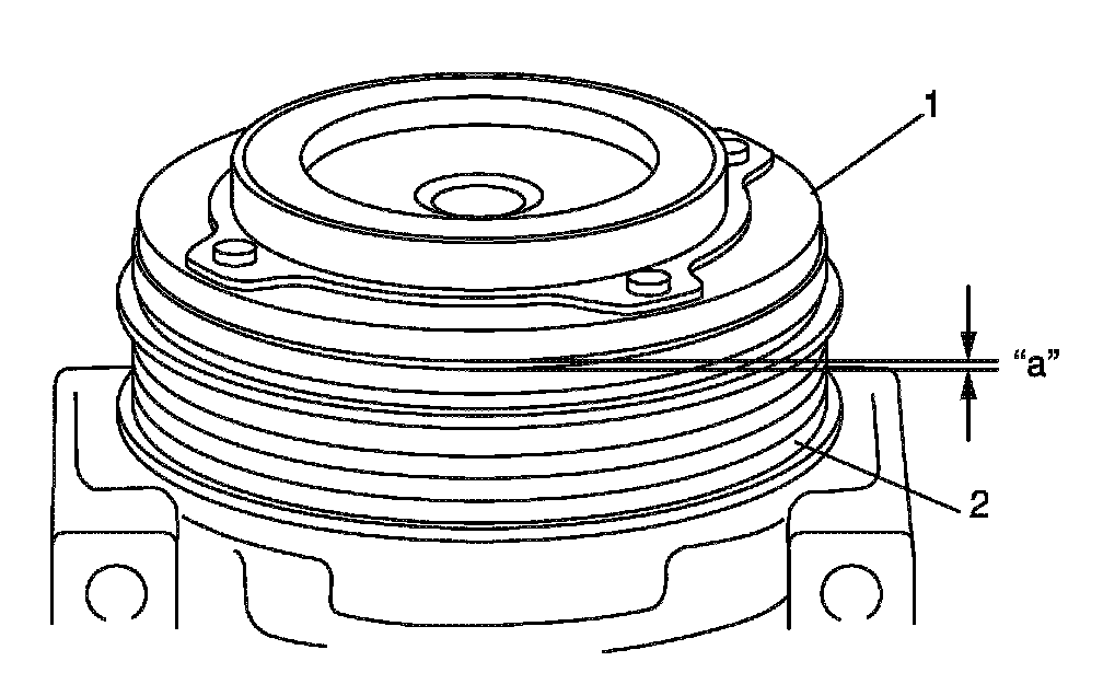 Standard clearance between armature plate and magnet clutch pulley "a": 0.35 - 0.6 mm (0.014 - 0.023 in.)