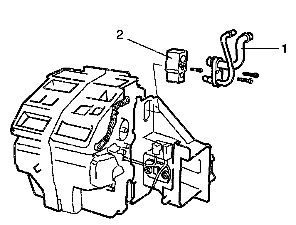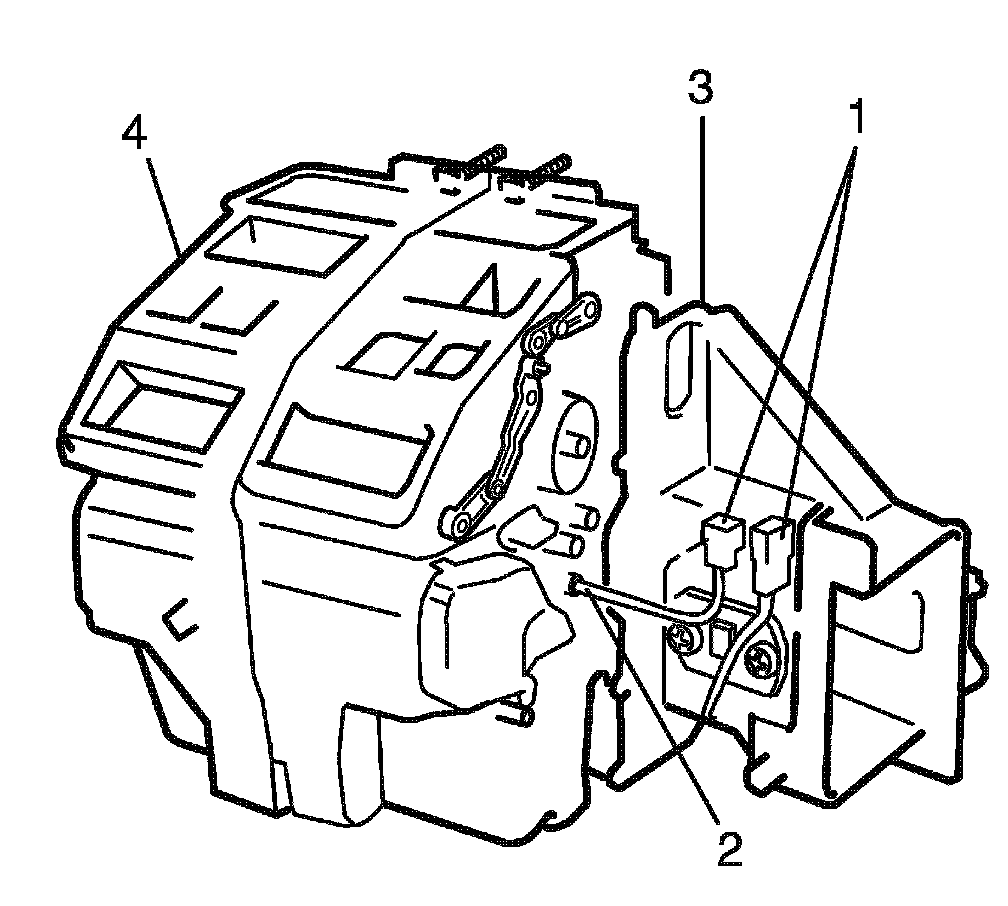 9. Remove A/C evaporator outlet air temperature sensor (2).