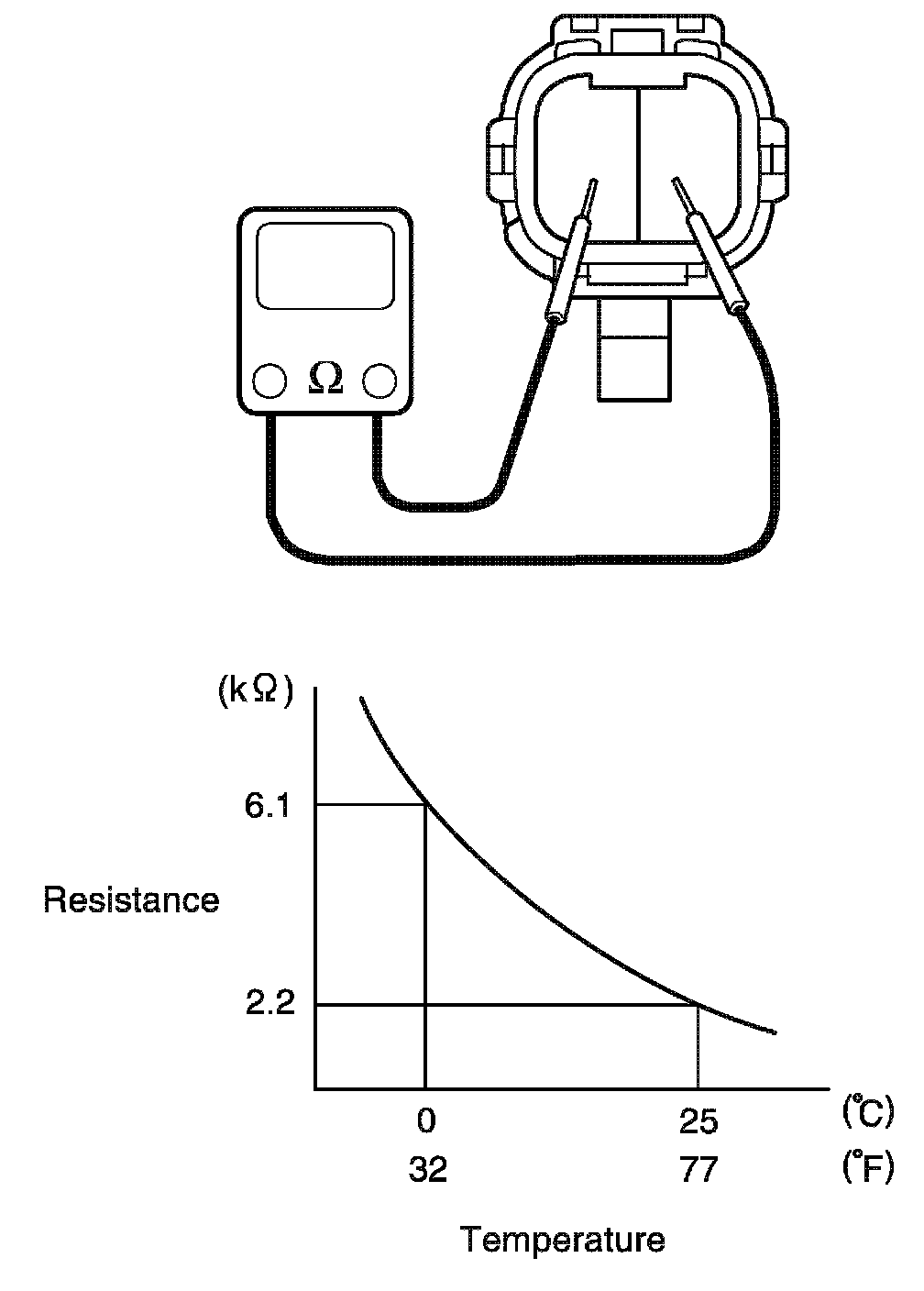 Outside air temperature sensor resistance: 2.18 kilo ohm- 2.22 kilo ohm at 25 °C (77 °F)