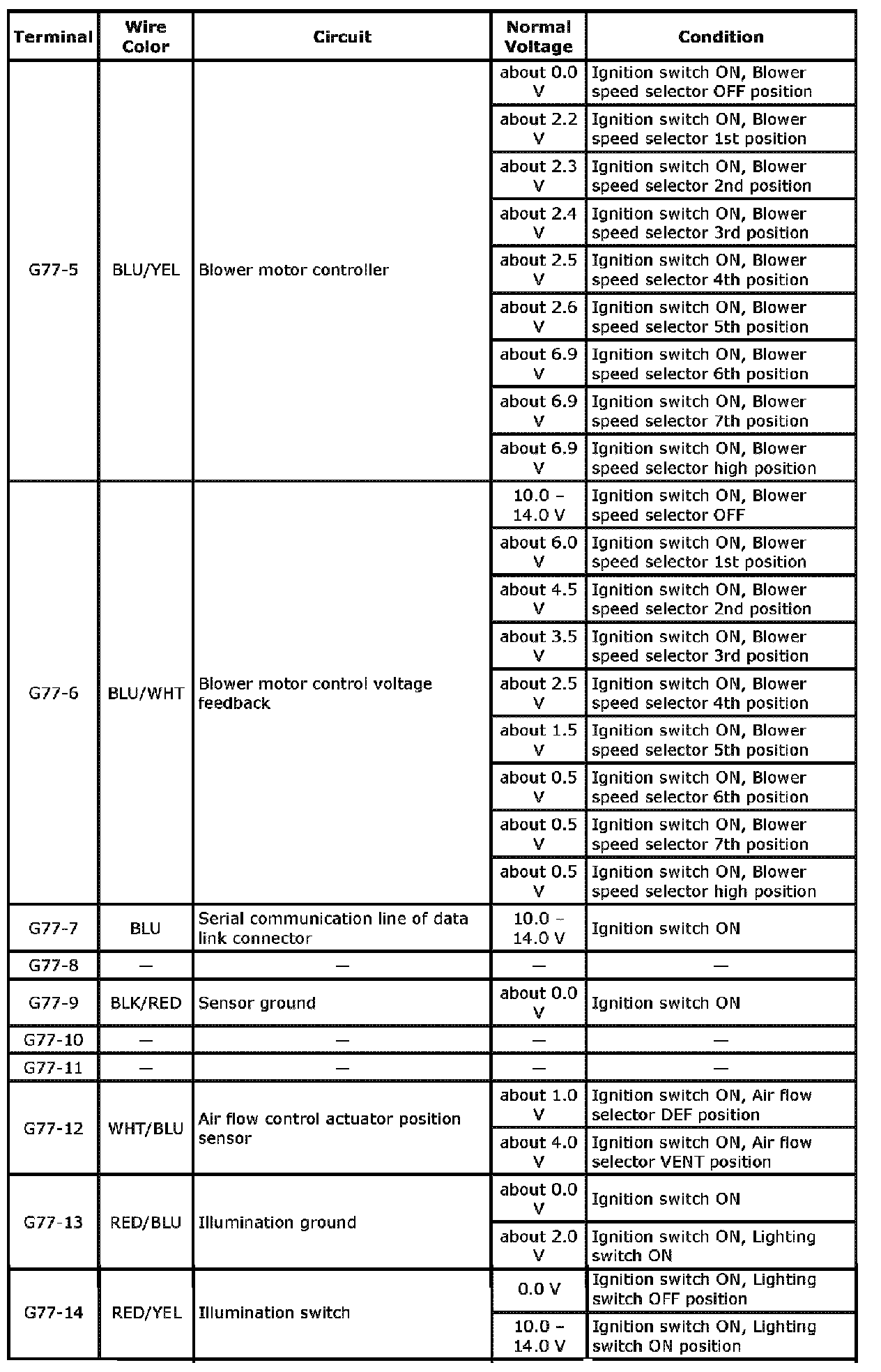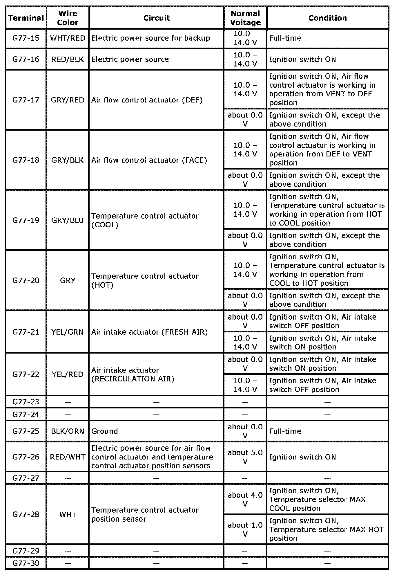 Inspection of HVAC Control Module and its CircuitHVAC control module and its circuits can be checked at HVAC control module wiring coupler by measuring voltage.