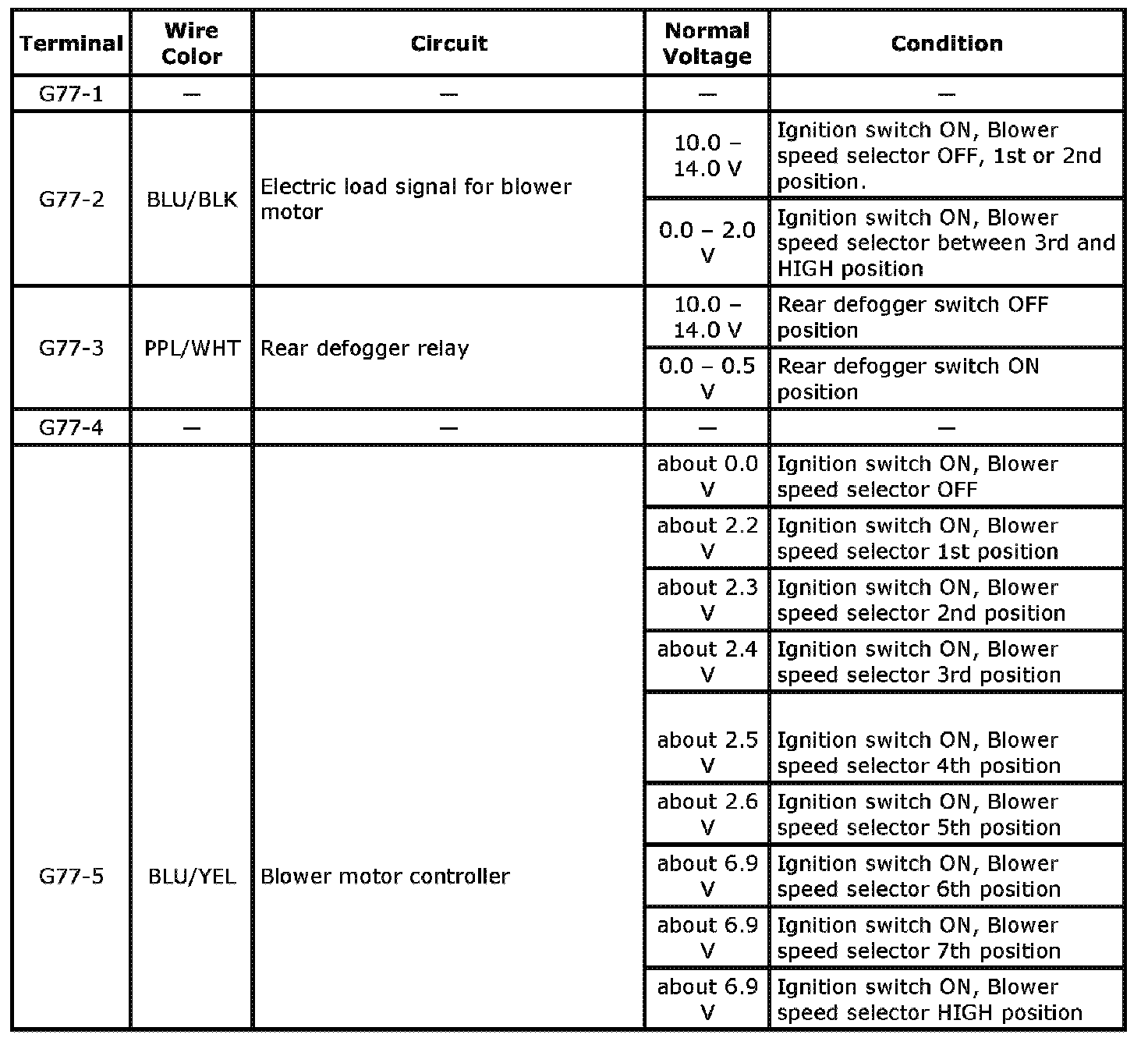 HVAC Control Module Voltage Table Part 3: