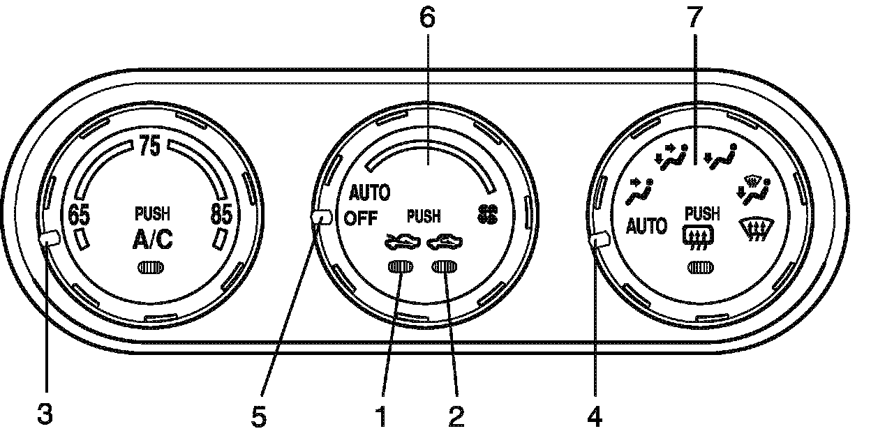 1. Ensure that fresh air indicator (1) and recirculation air indicator (2) operate properly.