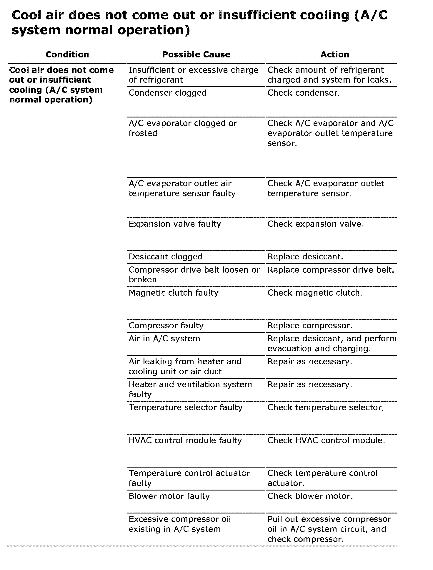 Cool Air Does Not Come Out or Insufficient Cooling (A/C System Operates Normally)