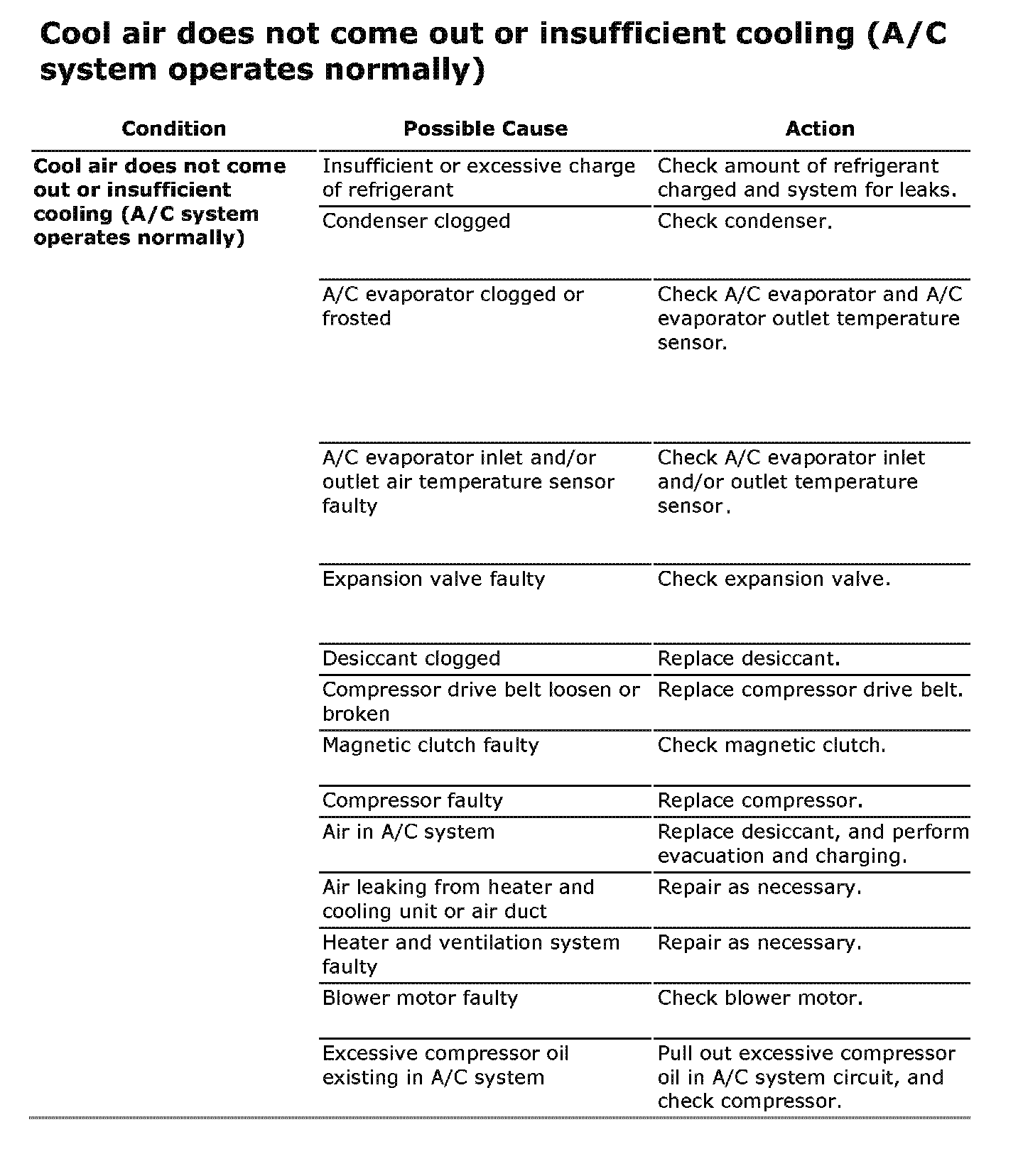 Cool Air Does Not Come Out or Insufficient Cooling (A/C System Operates Normally):