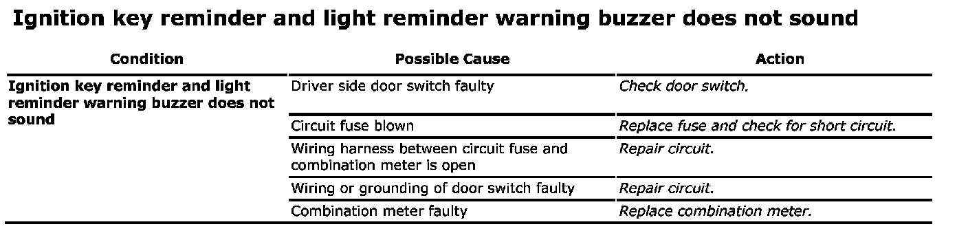 Ignition Key Reminder And Light Reminder Warning Buzzer Symptom Diagnosis: