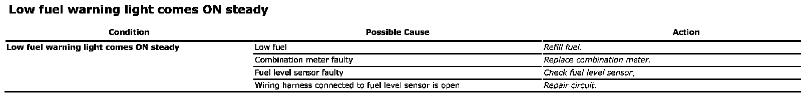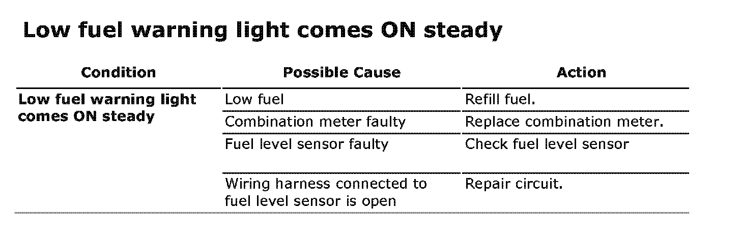 Low Fuel Warning Light Comes ON Steady:
