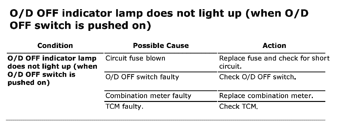 O/D OFF Indicator Lamp Does Not Light Up (when O/D OFF Switch Is Pushed On):