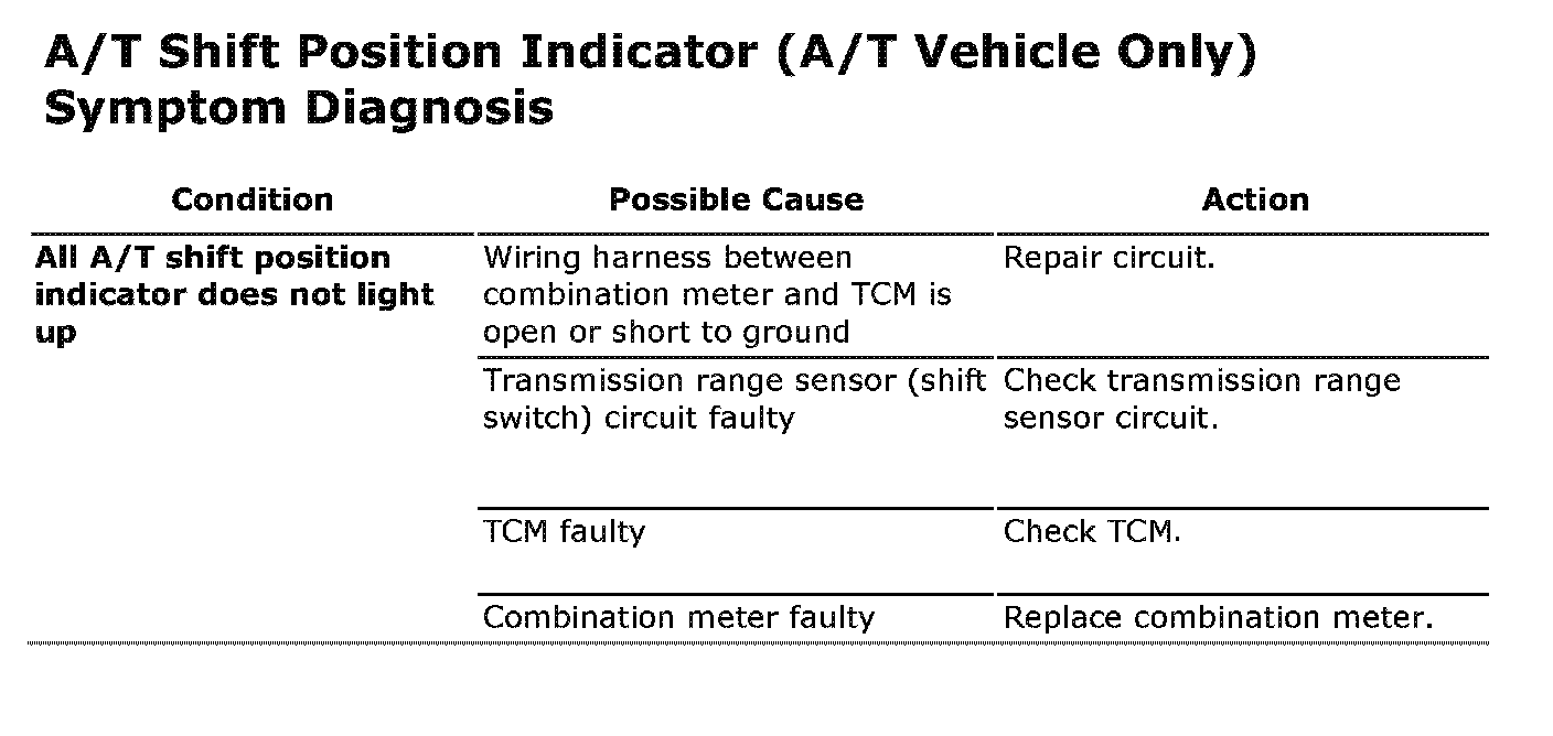 A/T Shift Position Indicator (A/T Vehicle Only) Symptom Diagnosis