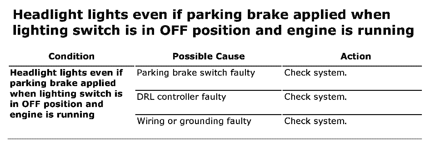 Headlight lights even if parking brake applied when lighting switch is in OFF position and engine is running: