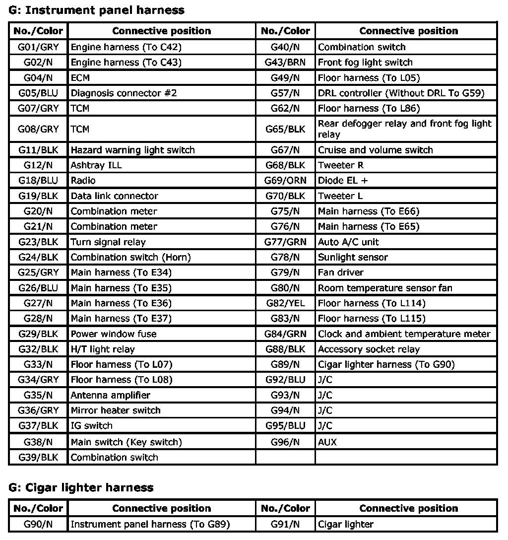 G Instrument Panel Harness, Cigar Lighter Harness View:
