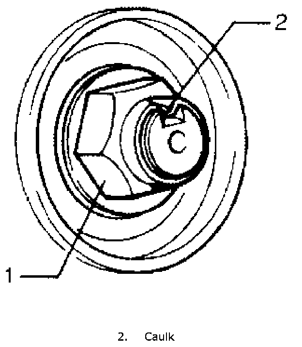 4) Caulk spindle nut (1) as shown.