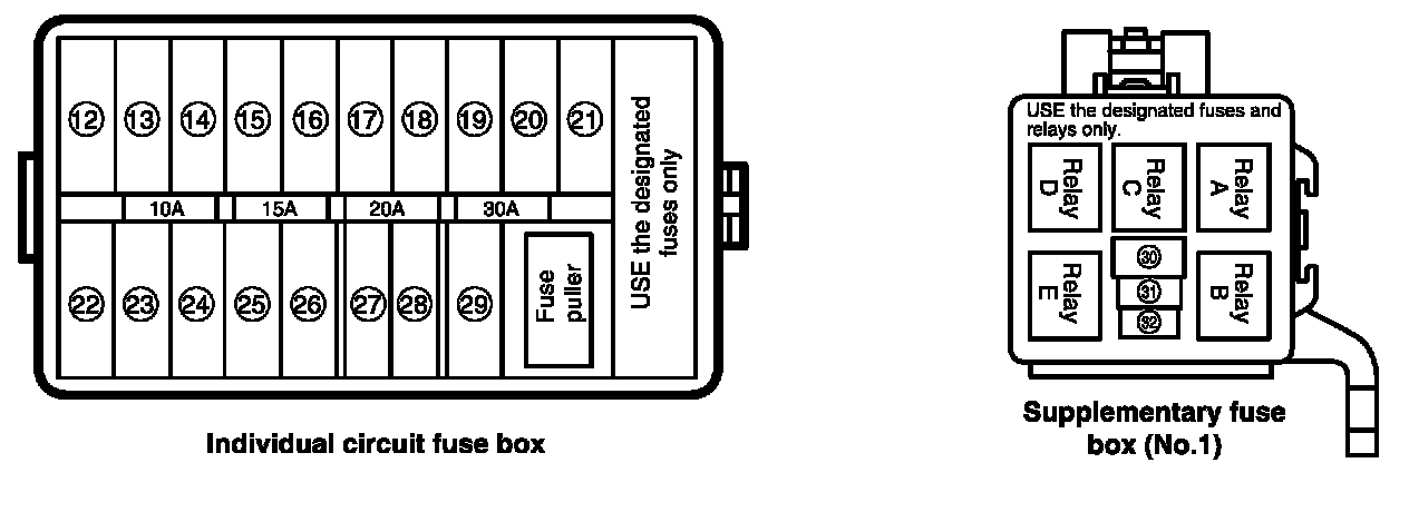 Individual Circuit Fuse Box, Supplementary Fuse Boxes 1 and 2