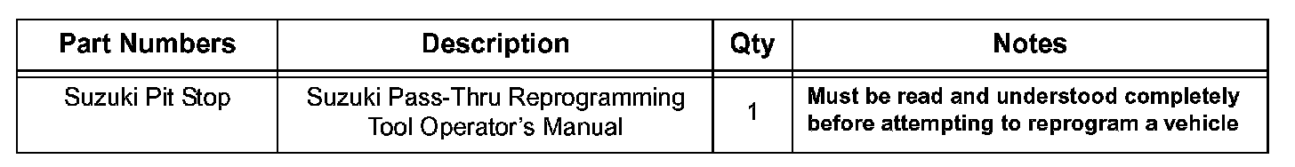 2. Download and review the Suzuki Pass-Thru Reprogramming Tool Operator's Manual. This must be read and understood COMPLETELY before attempting to reprogram the ECM.