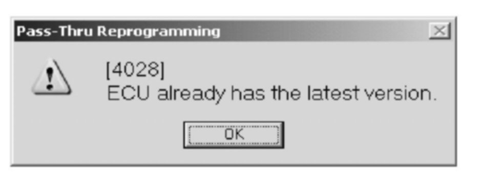 If you believe the code "[4028] ECU already has the latest version" is false, check that the Database has been properly installed. Repeat step 4 and then try reprogramming again. If after installing the Database properly code 4028 appears again, no further action is required.