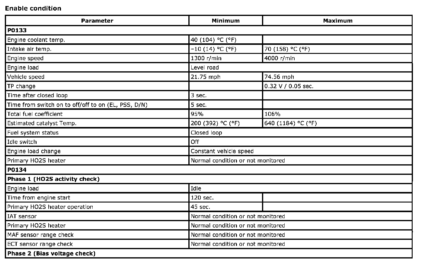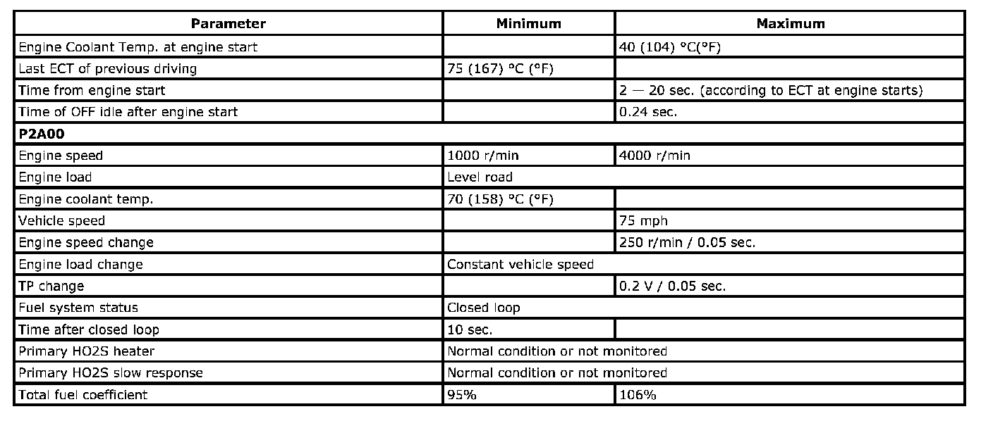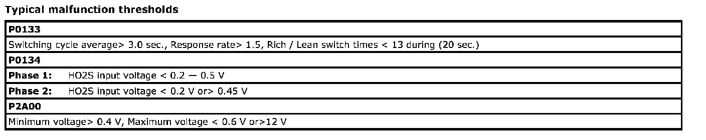 For a primary HO2S, the system monitors maximum and minimum voltage, lean-to-rich and rich-to-lean response rates, and switching cycles. The sensor is also monitored for activity continuously.