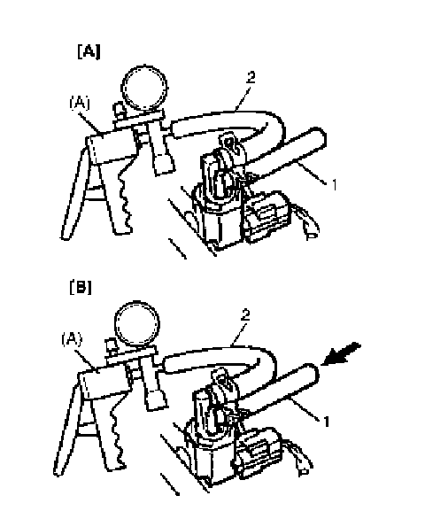 [A] Valve OFF: When vacuum (53 kPa ( 7.69 psi) to 67 kPa ( 9.72 psi)) is applied to hose (2), vacuum is maintained.