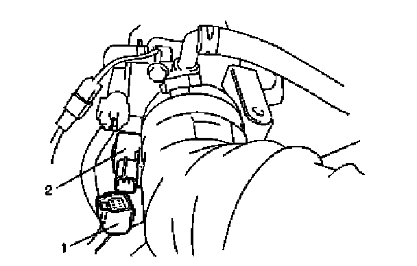 5. Check that idle speed increases and/or reduces when connector (1) is connected to IAC valve (2).