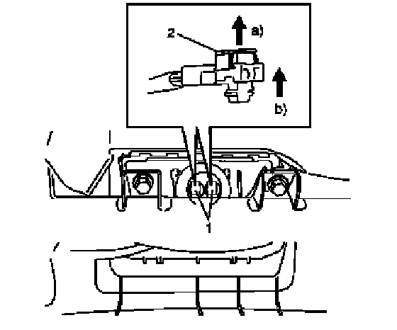 3. Disconnect passenger air bag (inflator) module connectors (1) as shown in the figure.