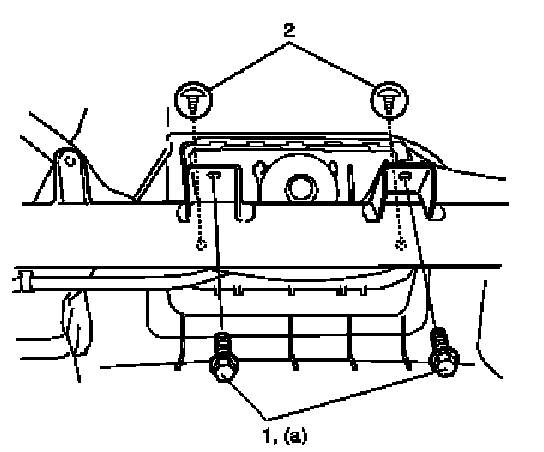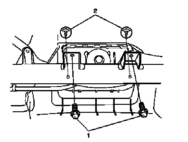 4. Remove passenger air bag (inflator) module attaching bolts (1) and screws (2).