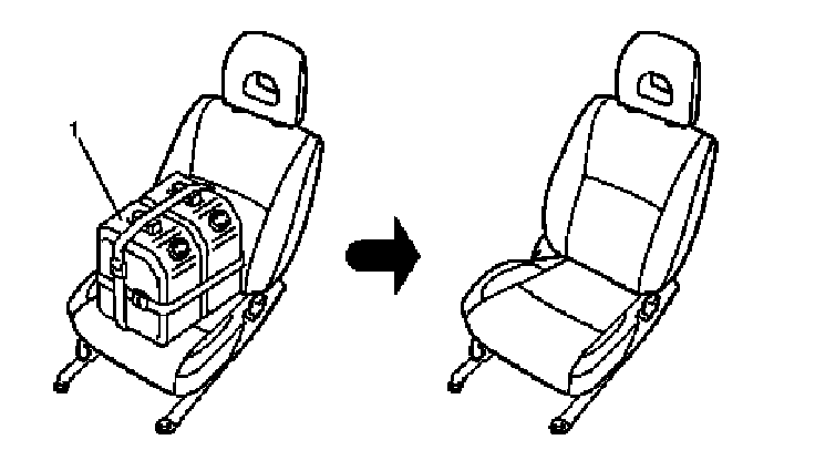 a. Place 40 kg (88.2 lb) weight (1) on passenger seat cushion and record each weight sensor load value.