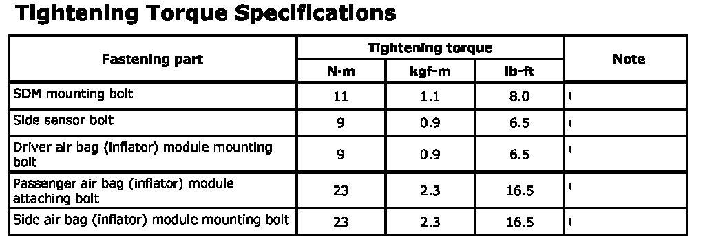 For the tightening torque of fastener not specified, refer to Fasteners Information.