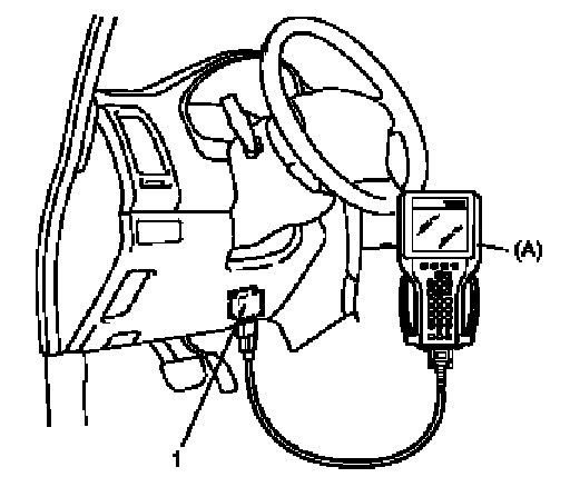 5. After completing the check, turn ignition switch to OFF position and disconnect SUZUKI scan tool from data link connector (DLC) (1).