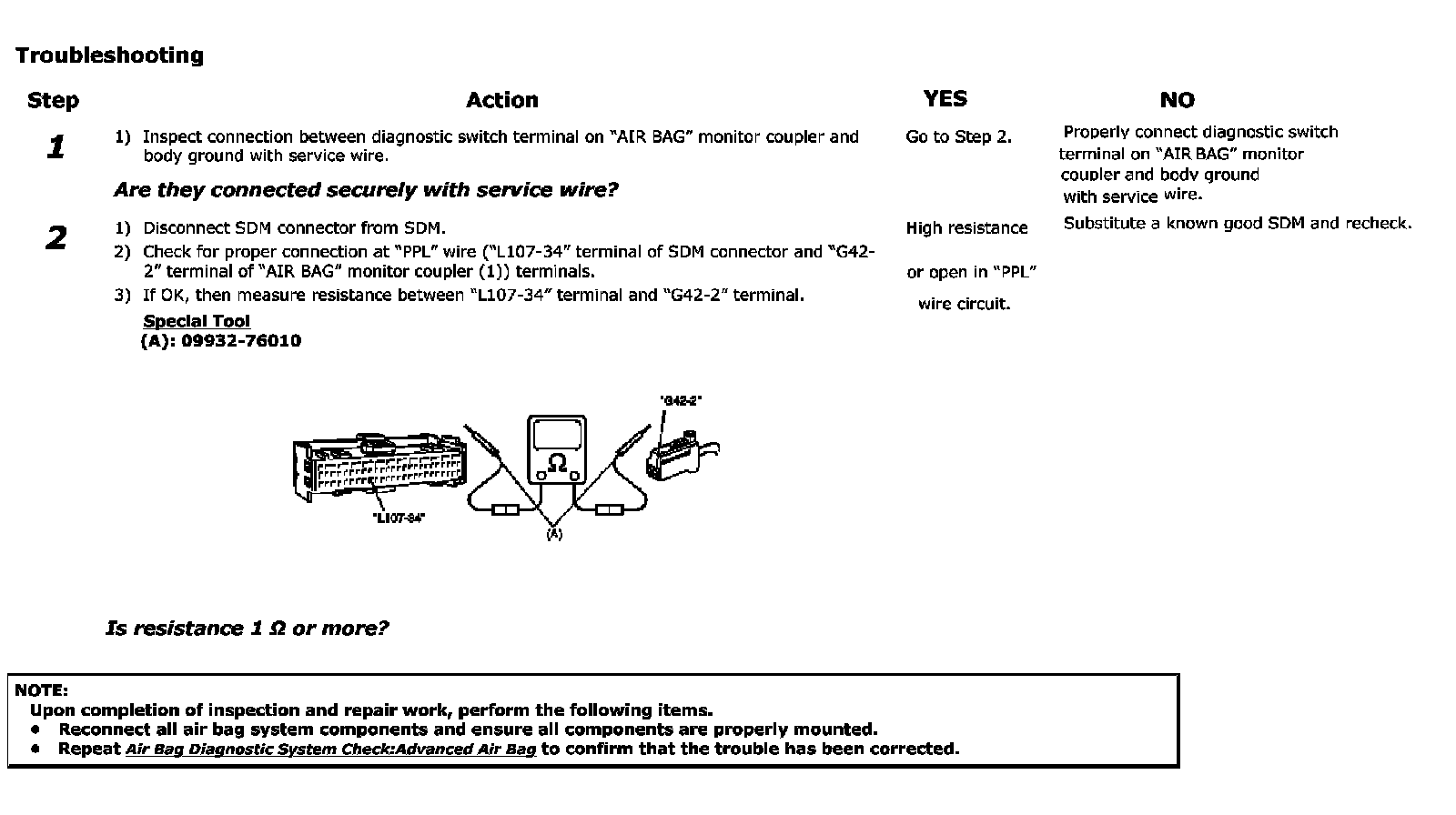 - When a check for proper connection is required, refer to Inspection of Intermittent and Poor Connections:Advanced Air Bag. Inspection of Intermittent and Poor Connections