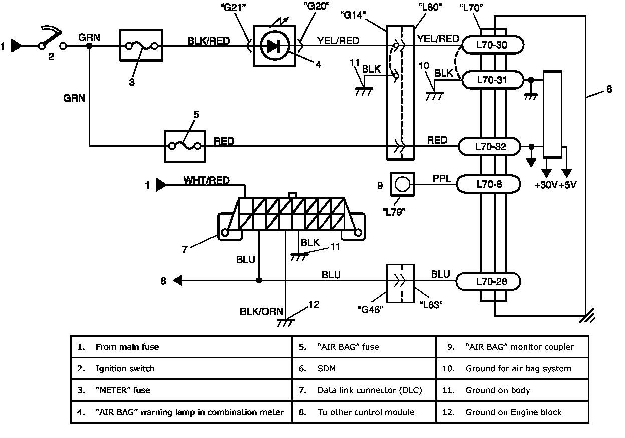 "AIR BAG" Warning Lamp Cannot Indicate FlashingWiring Diagram: