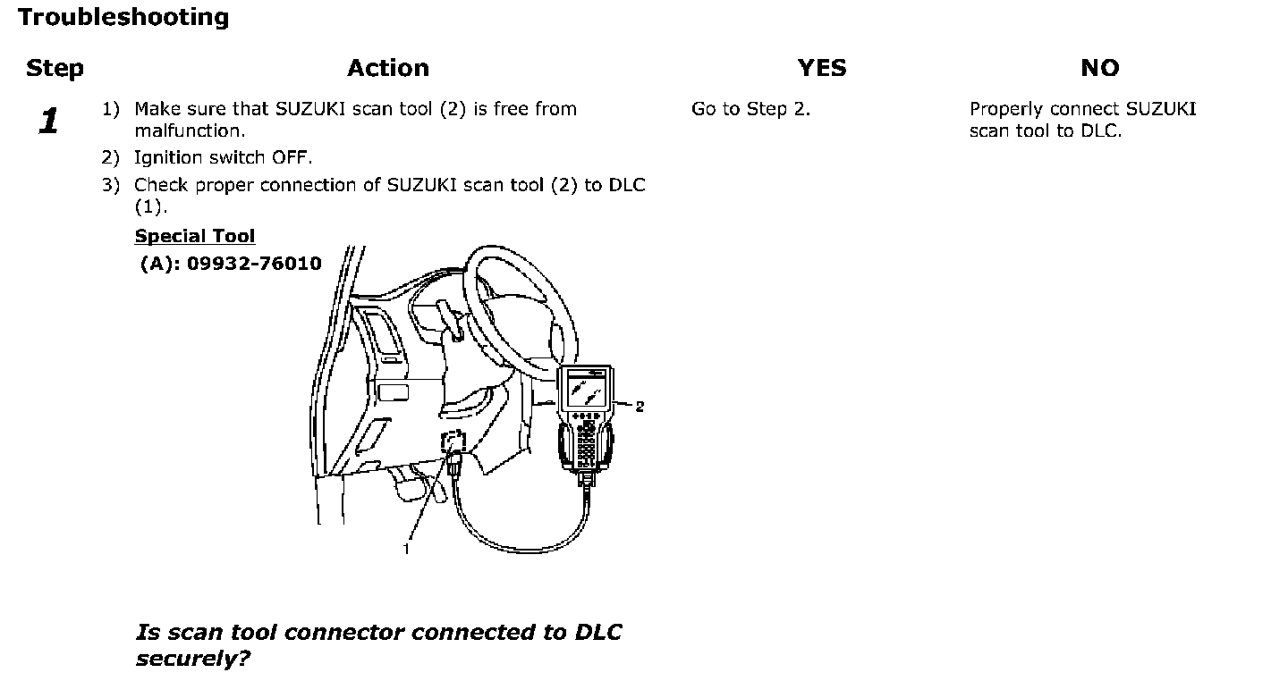 STEP 1: An improper connection to the data link connector (DLC) will prevent communications from being established.