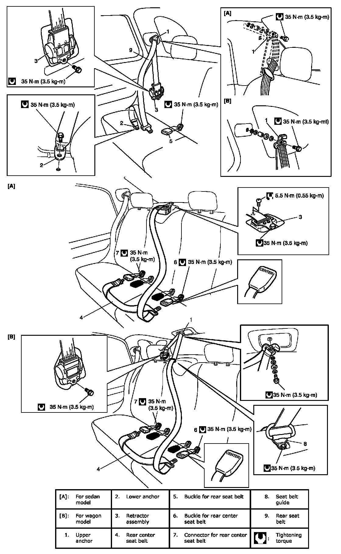 Rear Seat BeltWARNING: Be sure to read Precautions on Service and Diagnosis of Seat Belt before starting to work and observe every precaution during work.