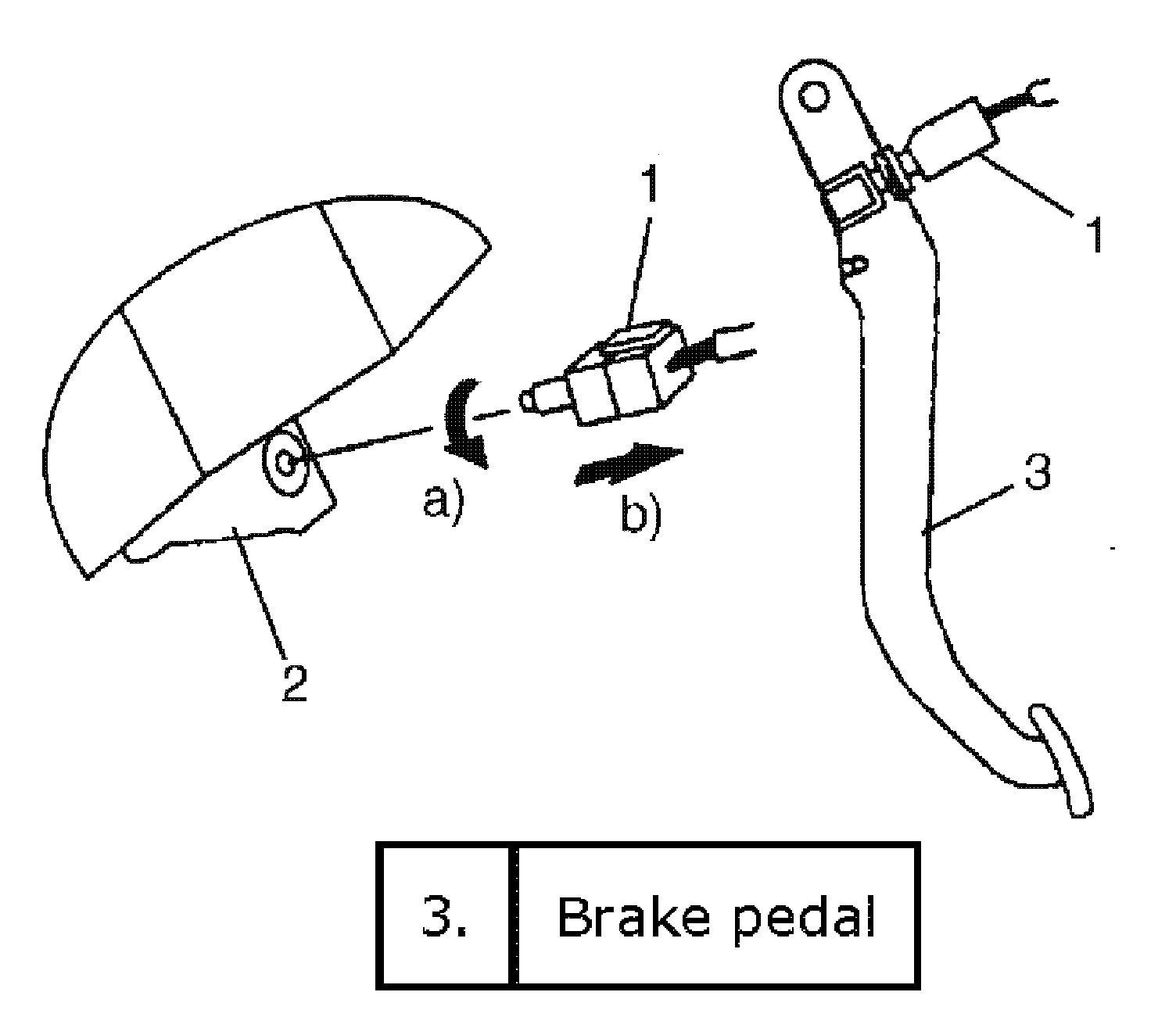 3. Remove stop lamp switch (1) from pedal bracket (2) as follows.